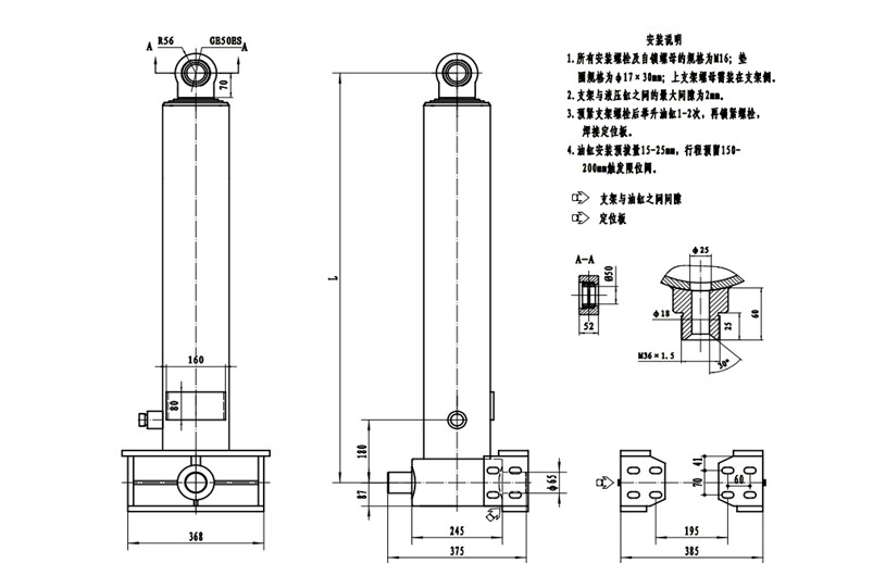 前置頂液壓油缸(不帶外套筒)                                TG150系列(工程系列)